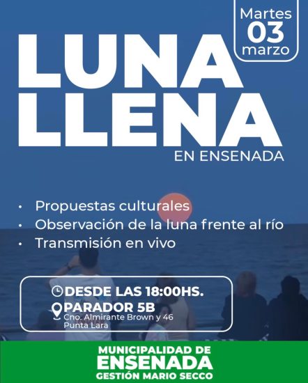 Este martes 3 de marzo, desde las 18:00 horas, se podrá disfrutar de la luna llena con su momento central a las 19:35 horas en el Parador 5B. Un espectáculo natural único en Ensenada.