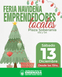 Sábado 13/12, desde las 15hs. se desarrollará la Feria Navideña de Emprendedores Locales en la Plaza Soberanía (532 y 124).