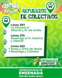 El domingo 15 y el lunes 16 de febrero se vivirá la gran fiesta popular con las mejores comparsas, murgas y todo el color de nuestra ciudad. Desde las 20 horas, en la Avenida Horacio Cestino.