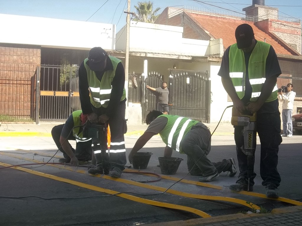 La Municipalidad de Ensenada avanza en la colación de nuevos reductores de velocidad sobre la remodelada calle San Martín. En este caso puntual se colocan reductores a la altura de la Escuela Primaria Nº3; esto es en calle San Martín entre Chile y Uruguay.