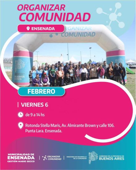 Con el objetivo de descentralizar y acercar a los barrios un abanico de servicios y prestaciones del Estado, hoy viernes 6 llega el operativo “Organizar Comunidad” de 9 a 14hs. a la Rotonda Stella Maris (Alte. Brown y 106). También habrá Mercado de Productores y Prevención de Odontopediatría.