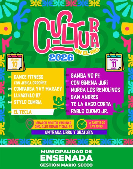 Además de las hermosas playas y el inmenso Parque Costero equipado frente al rio, los vecinos y turistas pueden disfrutar de los festivales de Cultura en el Río. A partir de las 18 hs, Paseo de Artesanos, Paseo Gastronómico, Feria de la Economía Popular y shows en vivo.