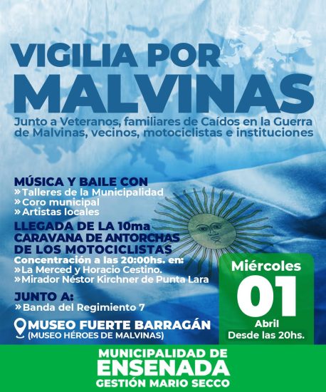El miércoles 1/4 te esperamos en el Museo Fuerte Barragán para compartir la Vigilia por Malvinas.
